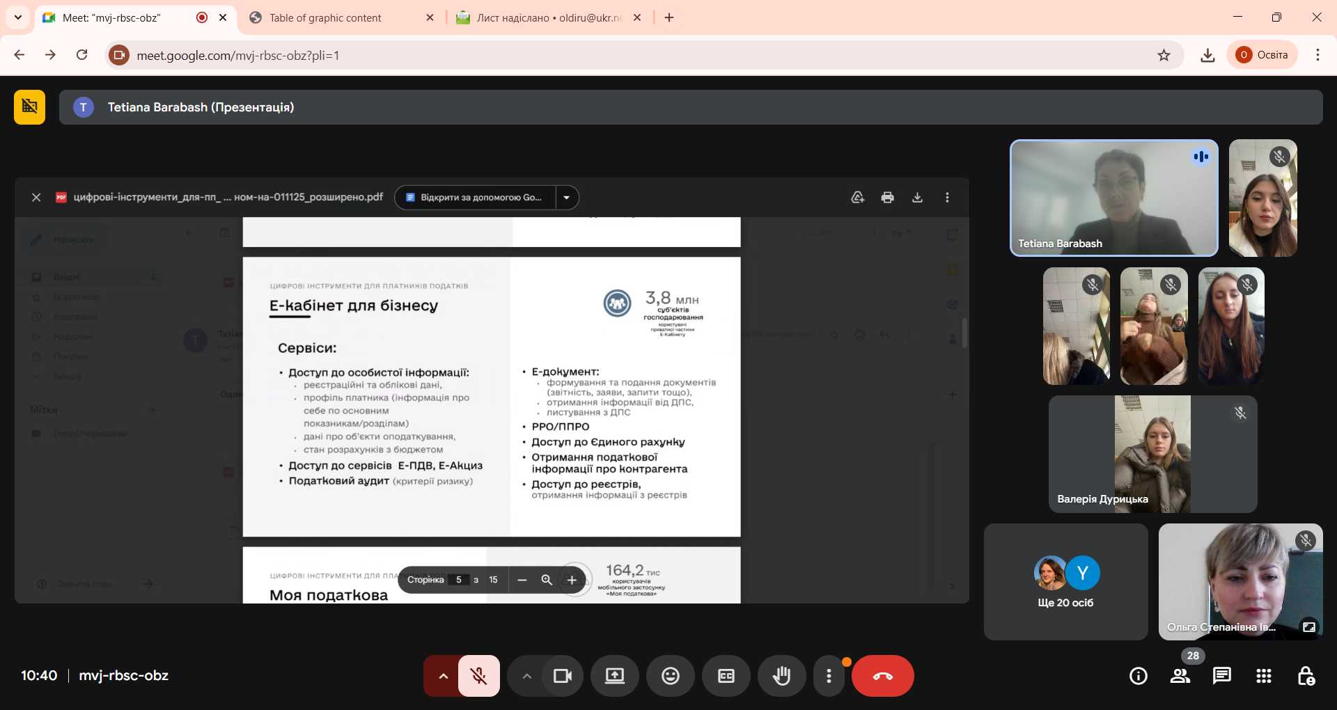 Під час лекції учасники ознайомилися з ключовими напрямами цифрової трансформації у сфері податкового адміністрування, сучасними електронними сервісами ДПС України, а також інструментами, які допомагають платникам податків ефективно виконувати свої обов’язки та взаємодіяти з податковими органами онлайн.
