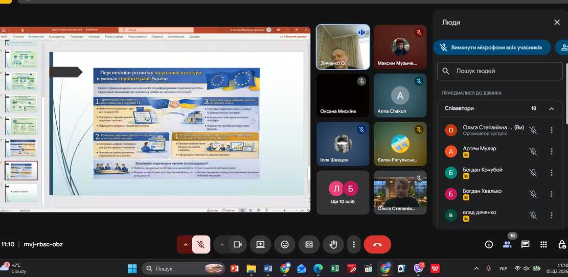 05.02.2026 відбувся захист дипломних робіт здобувачів вищої освіти групи ОММ-24-1 ОП Міжнародне оподаткування спеціальності 071 Облік і оподаткування. До підсумкової атестації було допущено та успішно захистили дипломні роботи 12 здобувачів.