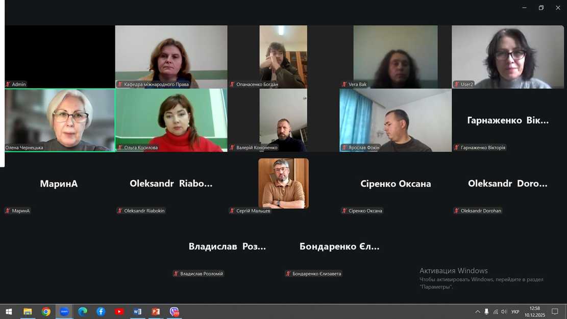 10 грудня 2025 р. кафедрою міжнародного права та права Європейського Союзу та кафедрою теорії та історії держави і права Навчально-наукового інституту права проведений міжкафедральний круглий стіл з нагоди Дня прав людини на тему: «Права людини в сучасних умовах: гуманістичний та безпековий вимір».