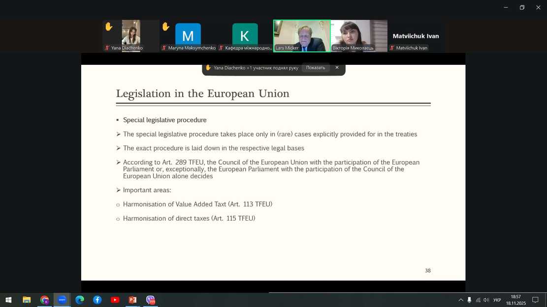 Протягом листопада 2025 року здобувачі вищої освіти спеціальності Міжнародне право прослухали цикл лекцій «Європейське право: європейське податкове право». Гостьовим лектором став доктор, професор Ларс Мікер – директор Інституту міжнародного податкового права (Нордкірхен, Німеччина).