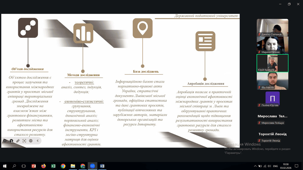 Члени комісії відзначили практичну спрямованість досліджень, якість проведеного аналізу, обґрунтованість висновків і рекомендацій, а також уміння здобувачів аргументовано представляти результати власних наукових напрацювань.