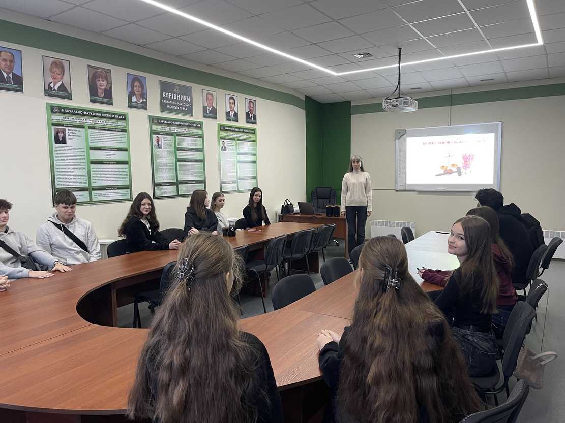 16 грудня доцентом кафедри цивільного права та процесу Менів Л.Д. проведено тренінг для школярів на тему «Купуй свідомо! Знай свої права!» Цей тренінг був спрямований на формування відповідального ставлення до споживання та підвищення обізнаності учнів щодо їхніх прав як споживачів. Під час заходу учасники ознайомилися з основними правами покупців, правилами безпечних та свідомих покупок, а також дізналися, як діяти у випадку придбання неякісного товару чи порушення їхніх прав.