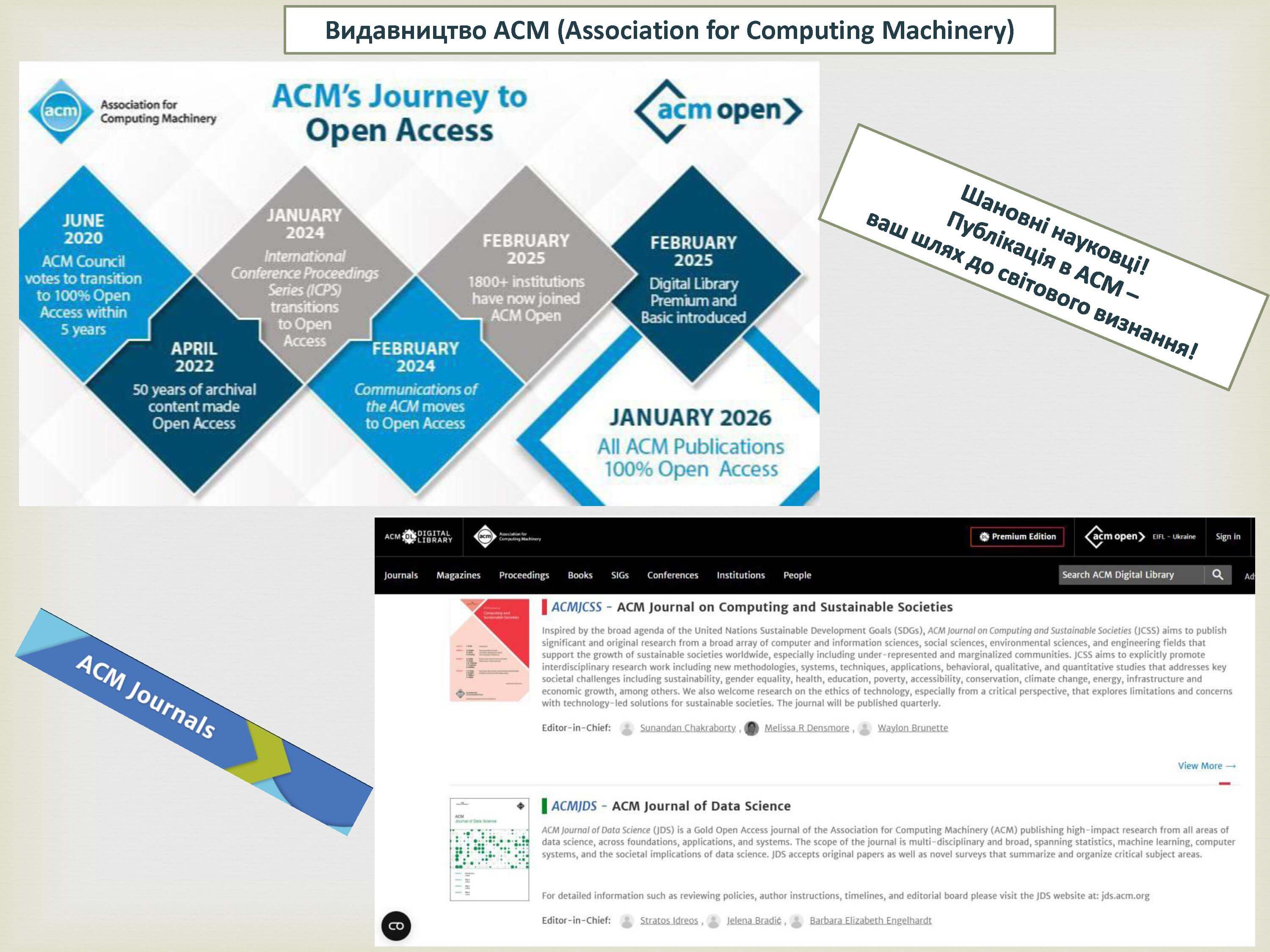 Журнали ACM характеризуються високим імпакт-фактором, суворим рецензуванням та оперативним поширенням наукових ідей, що робить їх ідеальним майданчиком для апробації результатів досліджень.