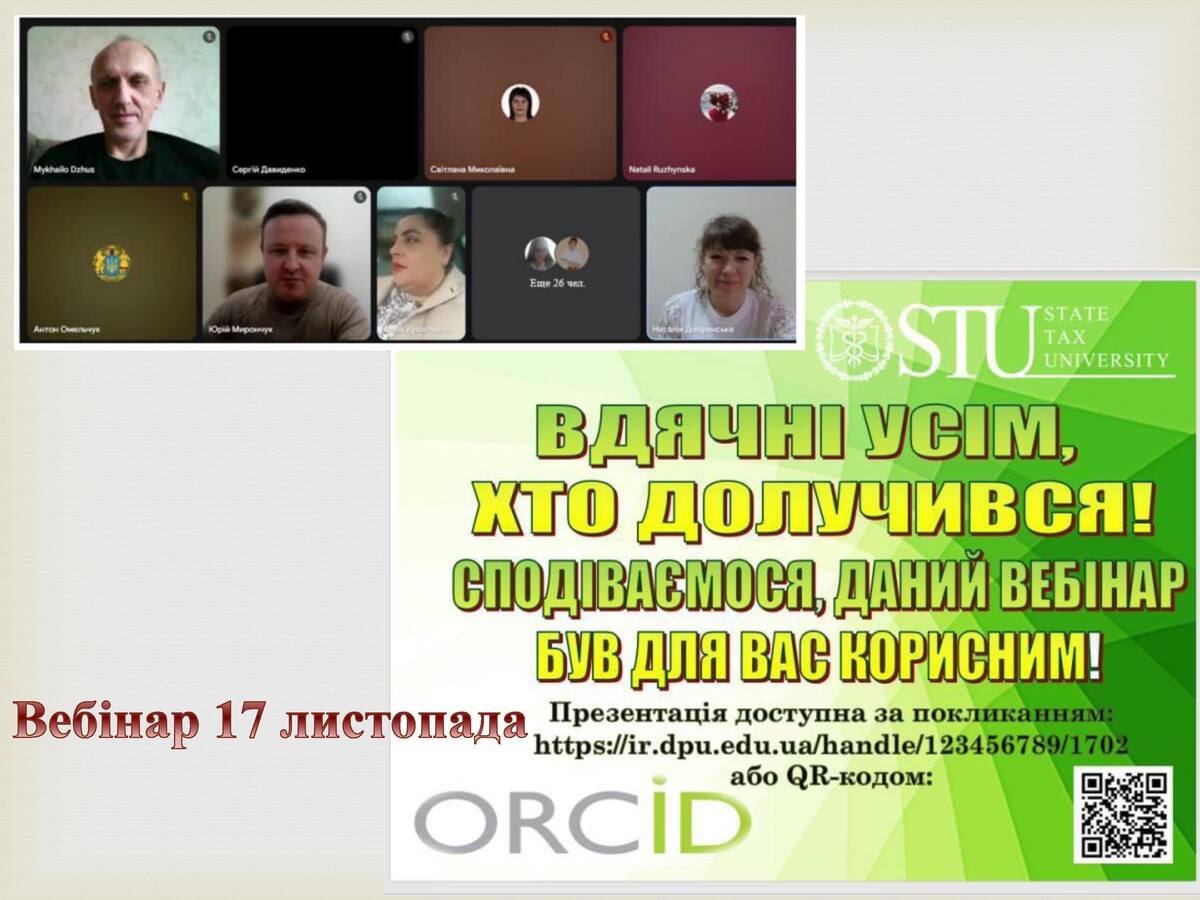 20 листопада відбувся вебінар на тему: «ORCID – ваш "цифровий паспорт" у світовій науці: переваги членства ДПУ в Консорціумі».