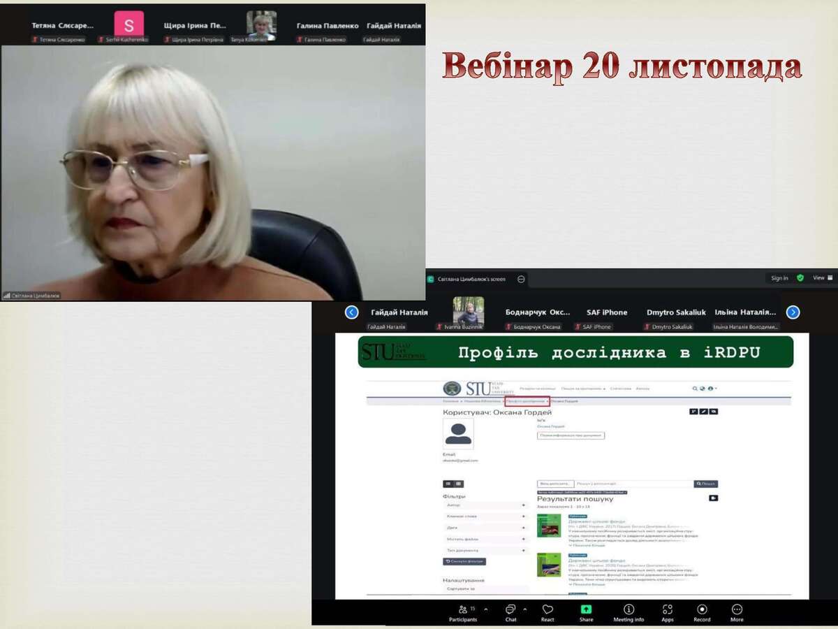 Спікер — Світлана Цимбалюк, директор Наукової бібліотеки Державного податкового університету, к.е.н., доцент, у невимушеній атмосфері показала, як зробити свій ORCID-профіль максимально ефективним і коректно пов’язаним з університетом.