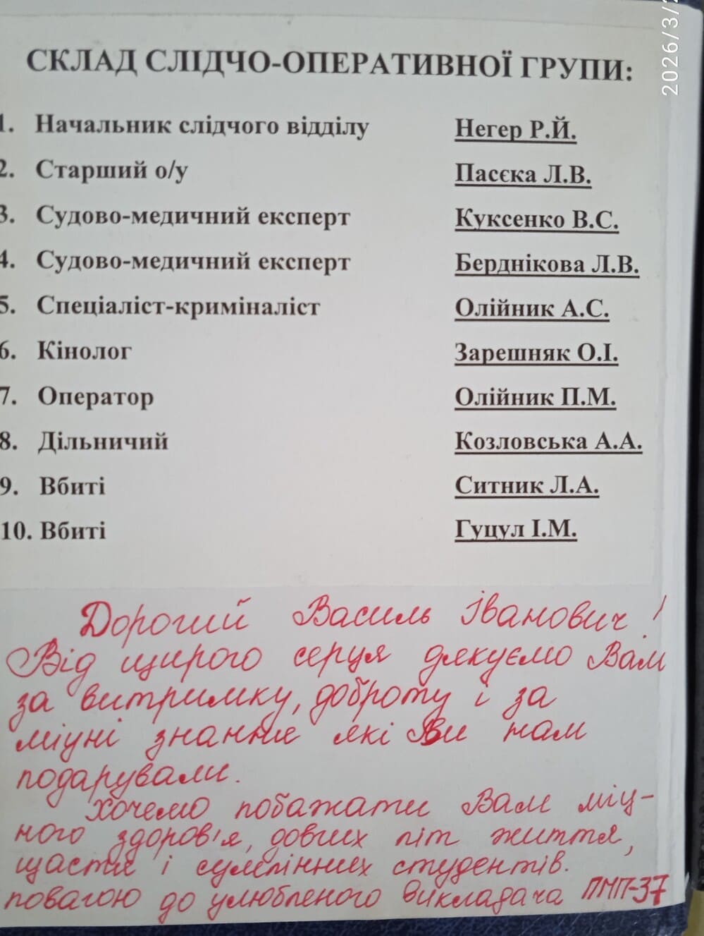 До Музею історії університету передано нові унікальні матеріали, які суттєво поповнять музейну колекцію та збережуть пам’ять про важливі сторінки навчального процесу. Йдеться про фотоальбоми про проведення практичних занять з криміналістики для курсантів Факультету податкової міліції, які проводив викладач Василь Коломієць. Ці альбоми були створені курсантами взводів ПМП-32, ПМП-37 та ПМП-31 і подаровані Василю Івановичу як знак глибокої поваги, вдячності та найкращих побажань за надзвичайно змістовні й практично орієнтовані заняття.